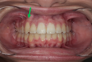 מקרה בו למטופלת יש 2 שיניים כלואות (חותכת מרכזית עליונה וניב עליון):